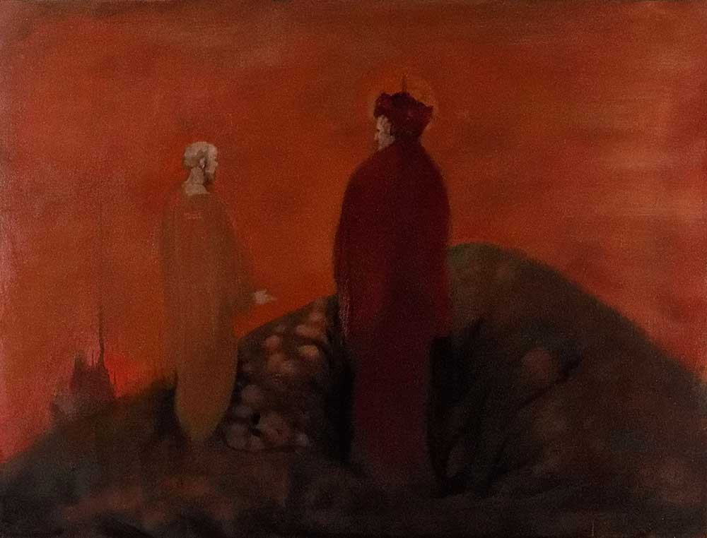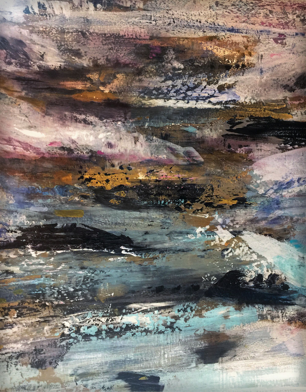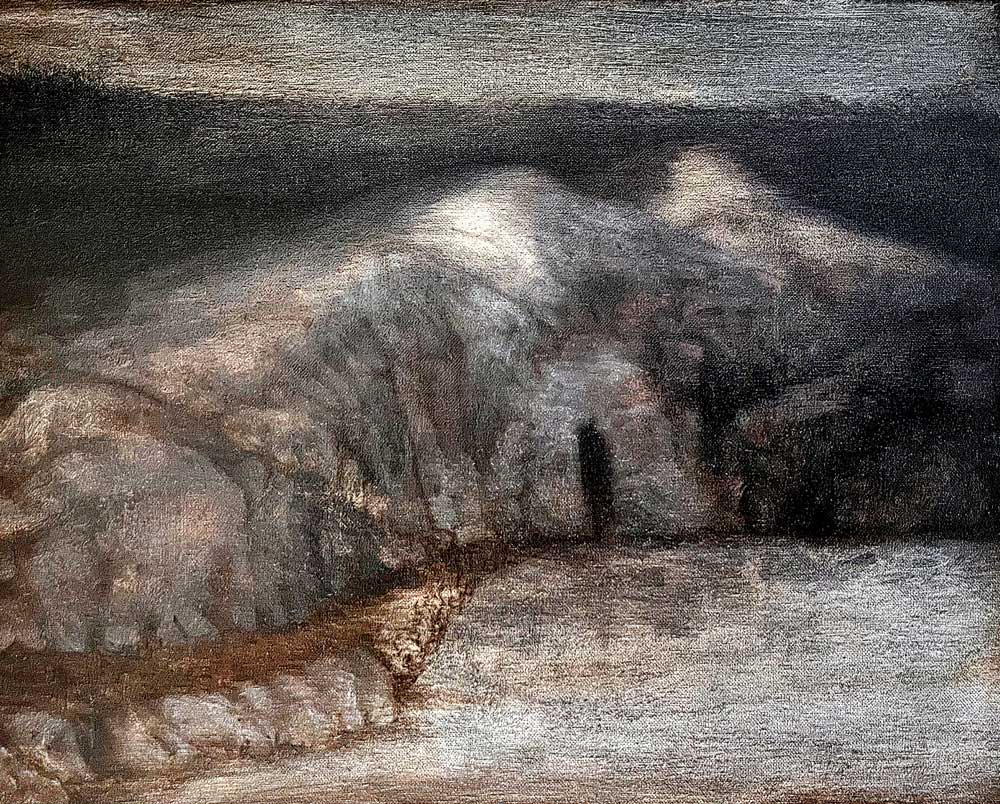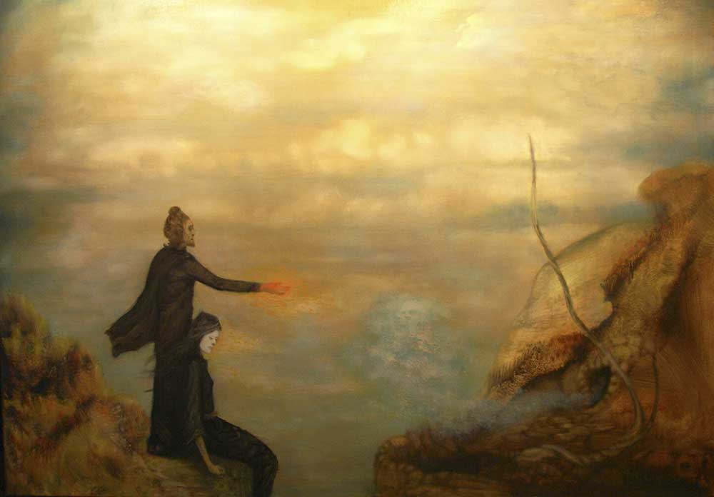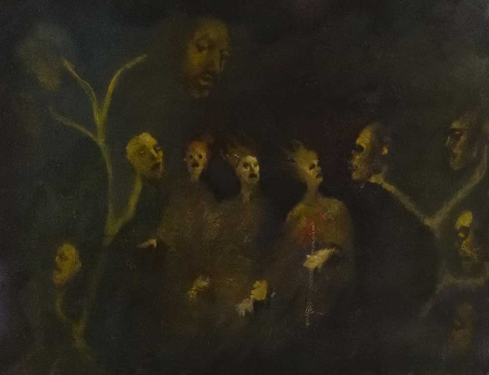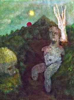 I've chosen not to use a live model, actual landscape, or reference photograph when it's impossible to reproduce what we see. My dedication is producing in terms of what I know, or mean to discover in that moment. One can utilize more potency when energy coexists between artist and hallucination, without a secondary object in sight to distract the focus. My stimulation branches from the roots of primordial Nature, what lies beneath, what forces conflict in us, what nirvanas attained through the journey, and, ultimately, what message is deciphered, and, at last, imbued to the viewer. If timelessness can be captured in a moment this is the goal. Of course, everyone shall not appreciate the results. Great failures are as great success, and in the historical world of art they are often one in the same. Has the artist's journey within the void gone too far away from reality? Have the translations revealed an idea steeped in mystery ? As the paintings remain, does their spirit wither through time or grow stronger? These answers are the summation of the choices and decisions of the past.”~ MLH