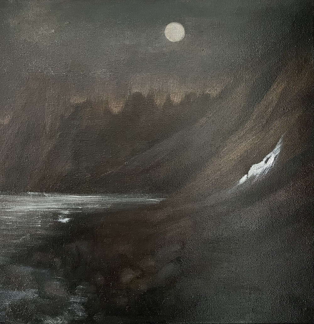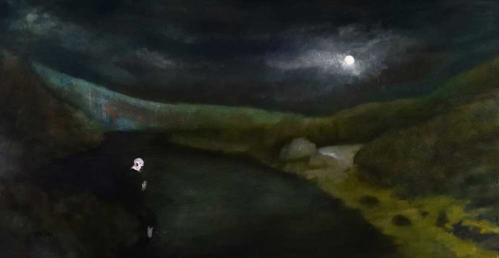 “Enclosed in a mausoleum. Surrounded by my lifelong collection of philosophical books. Beside them lurk my instruments; a piano, various stringed instruments, a talking drum. An easel stands tall atop an old Persian rug. A table set with brushes and oils. There was always the imagination, and a temple to alter it. You may think the music hollow, still I found the notes that pleased me. It started as an illusion which led me to leave this all behind, this lifework hovering just above a generation. The art of Self Impressionism became grounded in my psyche as far back as memory itself. The truth is, as a child my task was to throw the ball as far away from where I was and by the time it took to retrieve it I would be cured my affliction of boredom. With all the wonder of possibility unfolding by degrees I found life’s projections, when interpreted through the creative consciousness, revealed distinct patterns of guided interest. Know thyself in this moment and it will change the next, but record one’s dreams and architect and archeologist may return to decipher their unique mythology. paintings are layers of strokes, hammering a nail a series of taps, a piece of music is the progression of notes and so on, ever influenced by our last move. As in the game of chess, the history of our lives is revealed constantly with the event of each action preceding the final masterpiece”.-MLH