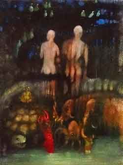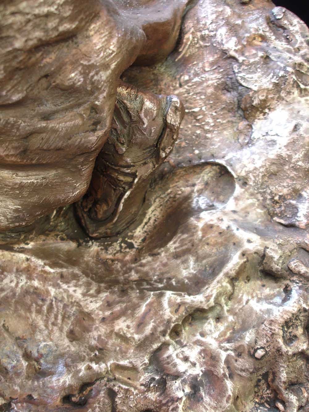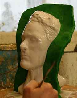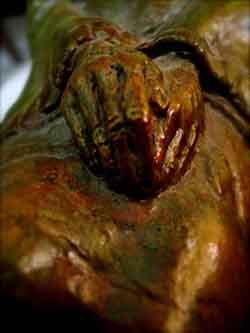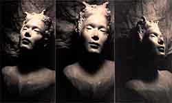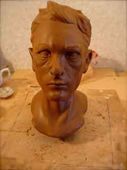“...it's still about drawing from the representation of Nature's form within a mass of earthen clay and raising from it’s surface it’s relationship to negative space. Sculpture presents many more challenges for me than painting, although just as many disasters have occurred in each medium. A stranger once wrote me during a time of struggle, suggesting to let it pour through the hands. Fingers make the most efficient tools and where they cannot reach there is a chopstick. A sculpture in all stages of metamorphosis entices the artist to master creating in the third dimension. How intricate the relationship with these transformations dictates the result of the final form. As in painting, the artist must know the surroundings which lie beyond the view and what influence they have on the figures and forms sprouting from the atmosphere contained within the scene. Loose strokes can be powerful in sculpture as they bear witness to it’s evolution. Instincts of drawing, composition, shadow value, and surface texture combine with the balance of moisture and drying time to give inspiration to the work in progress. Extracting forms from clay is to portray their birth. The artist labors long to find the truth, which is derivative of the deepest primal meaning, At the same time, the artist exists in harmony with the present condition leading into the future of the complete work. Archetypal, symbolist, allegorical; in sculpture, as in painting, there is but one image to present. It's not a moving picture, so it hasn’t the luxury of multiple chapters to explain it’s intention. It must embody all the emotional references of life and death in order to exist beyond mere decoration.”~MLH